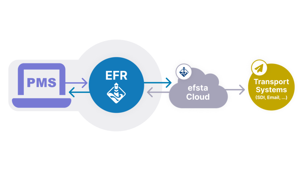 Die E-Invoicing-Funktionalität ist ein separat zu erwerbendes Modul, das innerhalb der EFR-Middleware (EFR = Basismodul zur Fiskalisierung) zum Einsatz kommt. Als Teil des efsta-Ökosystems gewährleistet die EFR-Plattform eine sichere Verarbeitung und Übertragung von Daten, deren langfristige Archivierung sowie die Systemverwaltung über das efsta Cloud Portal.